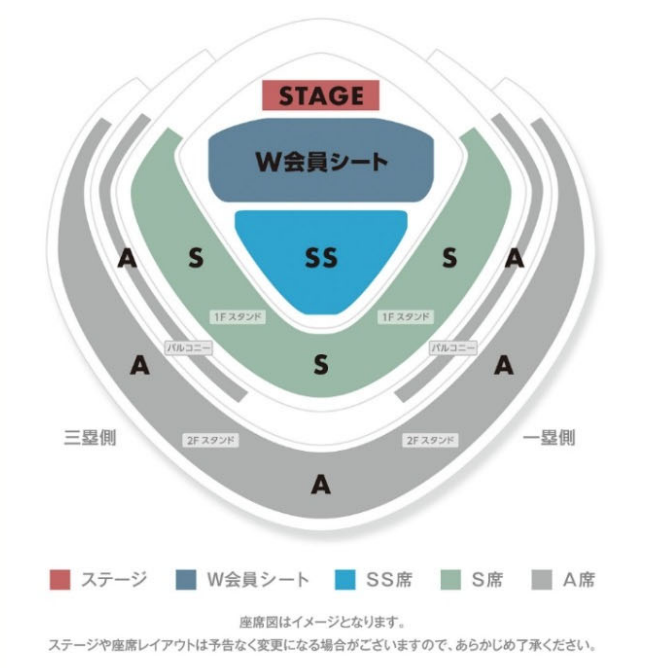 本表示は、①本コンサートのオフィシャルウェブサイト、及び「ticket boards」と称するウェブサイトの2つの媒体における、②本コンサートの座席に関する表示であった。消費者庁によれば、たとえば、2022年1月1日から同年5月18日の期間において、本コンサートのオフィシャルウェブサイトでは、「会場の座席レイアウトはこちら」との記載と共に、以下の画像が表示されていた。