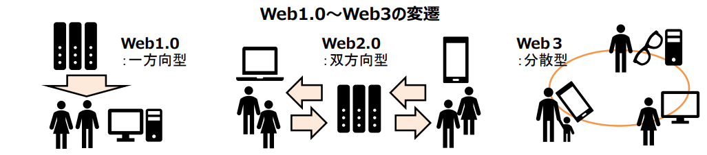 出典:Web3時代に向けたメタバース等の利活用に関する研究会(第1回)資料1-2「「Web3時代に向けたメタバース等の利活用に関する研究会」事務局資料」(総務省情報通信政策研究所調査研究部・情報流通行政局参事官)5頁