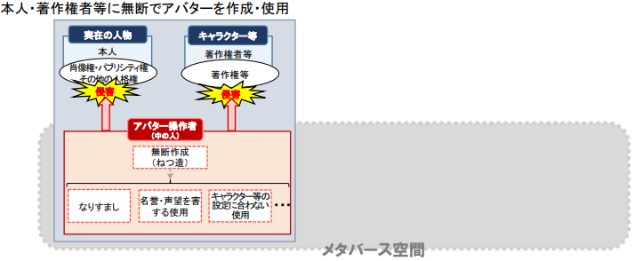 | 検討事項2 他者のアバターの肖像等の無断使用その他の侵害行為への対応 |