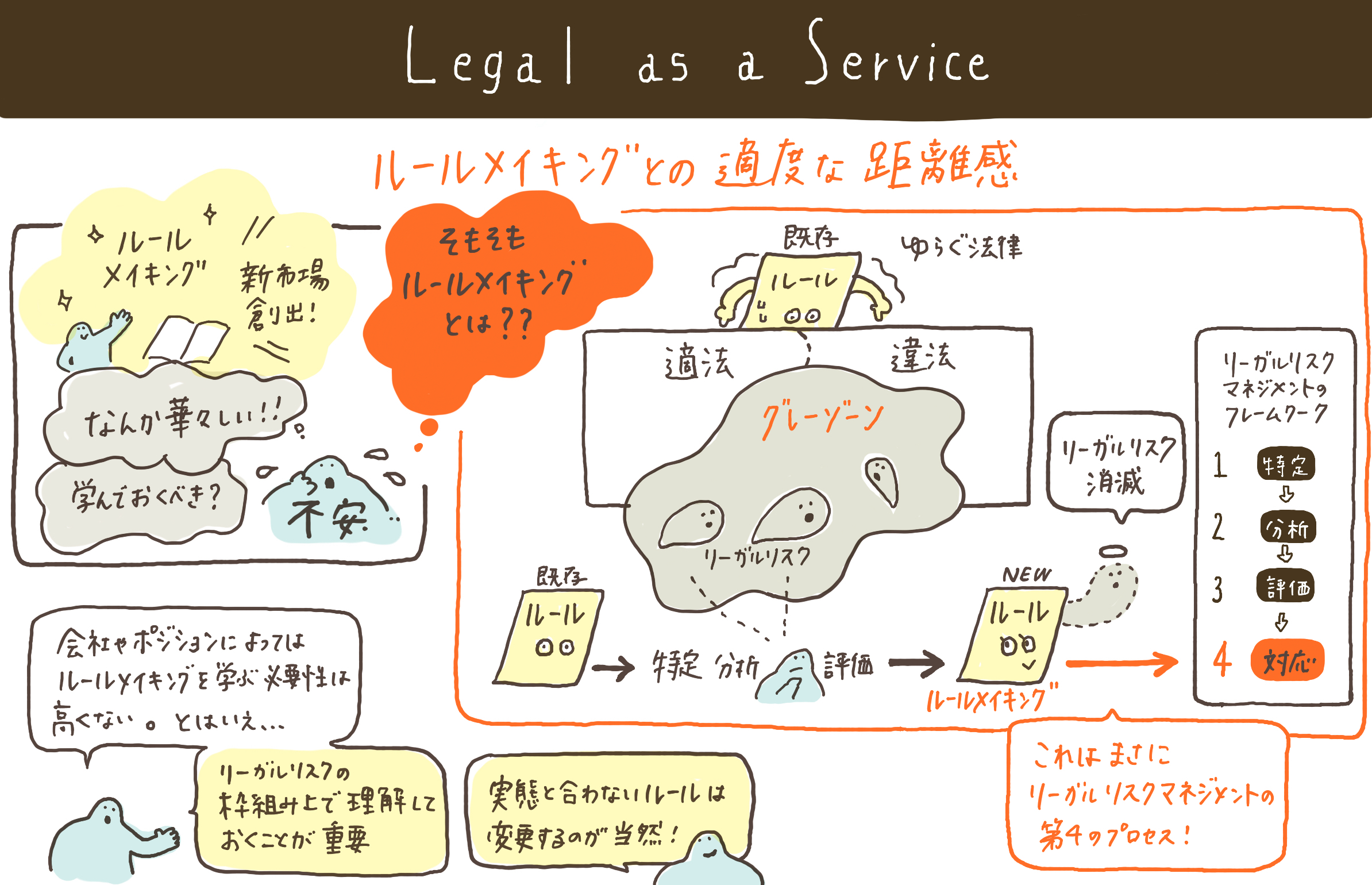 法務担当者の方から、書籍・法律雑誌・SNSにおいて、ルールメイキングが(やや華々しく)テーマとして取り上げられるのを見かける度に、小さな不安感や違和感を抱くとの声を頂戴したことがあります。