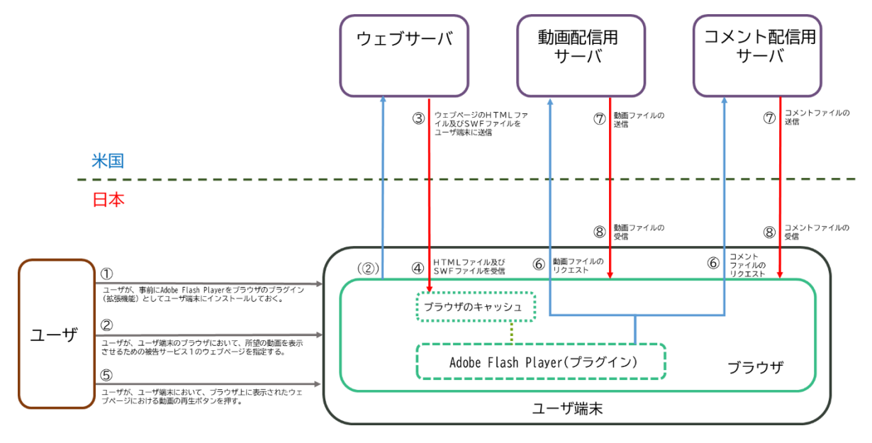 また、本判決文によれば、本判決で対象となったFC2サービス(FC2動画)のうちのFLASH版については、以下のとおりの動作をする。