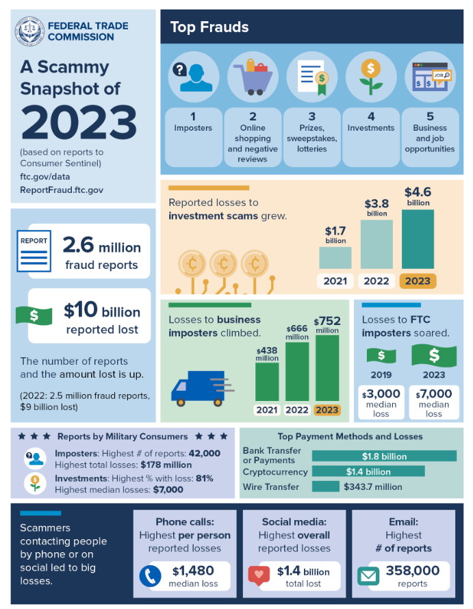 出典:「As Nationwide Fraud Losses Top $10 Billion in 2023, FTC Steps Up Efforts to Protect the Public」