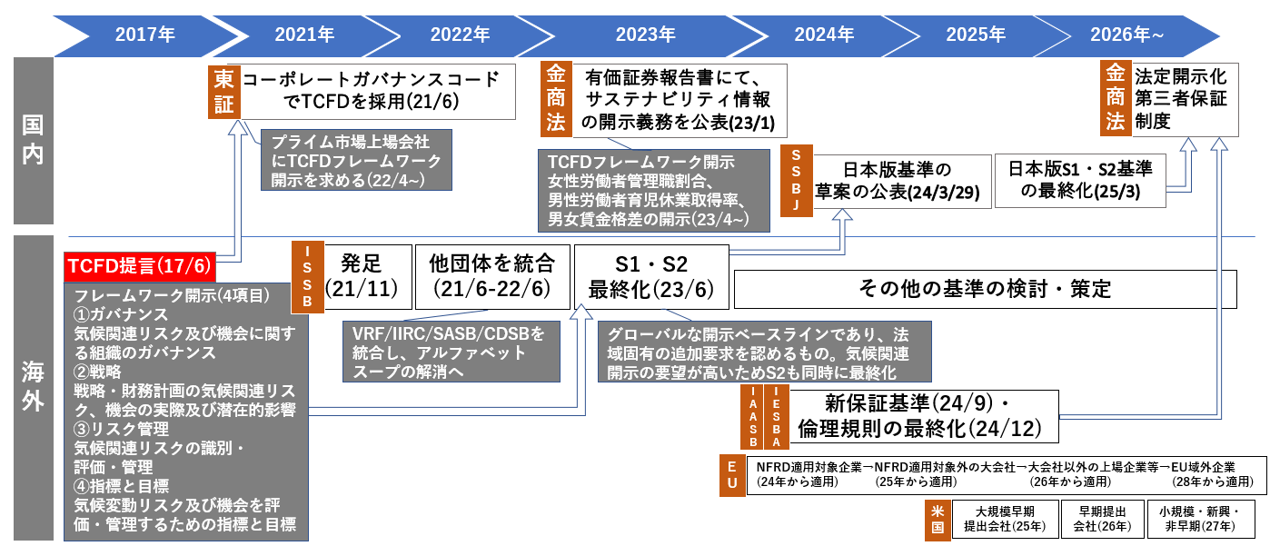 これにより、①サステナビリティ関連の情報の法定開示と、②サステナビリティ関連の開示情報に関する第三者保証制度の創設のための法令改正(「本改正」)に向けた本格的な検討が開始した。
