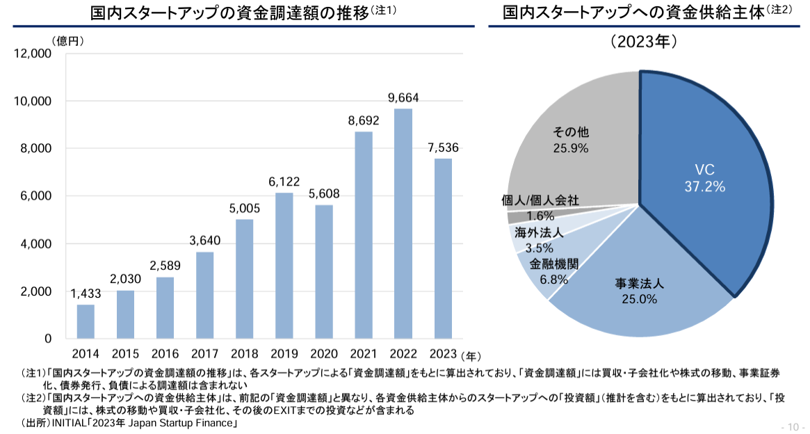 図表1 国内スタートアップの資金調達額の推移および資金供給主体