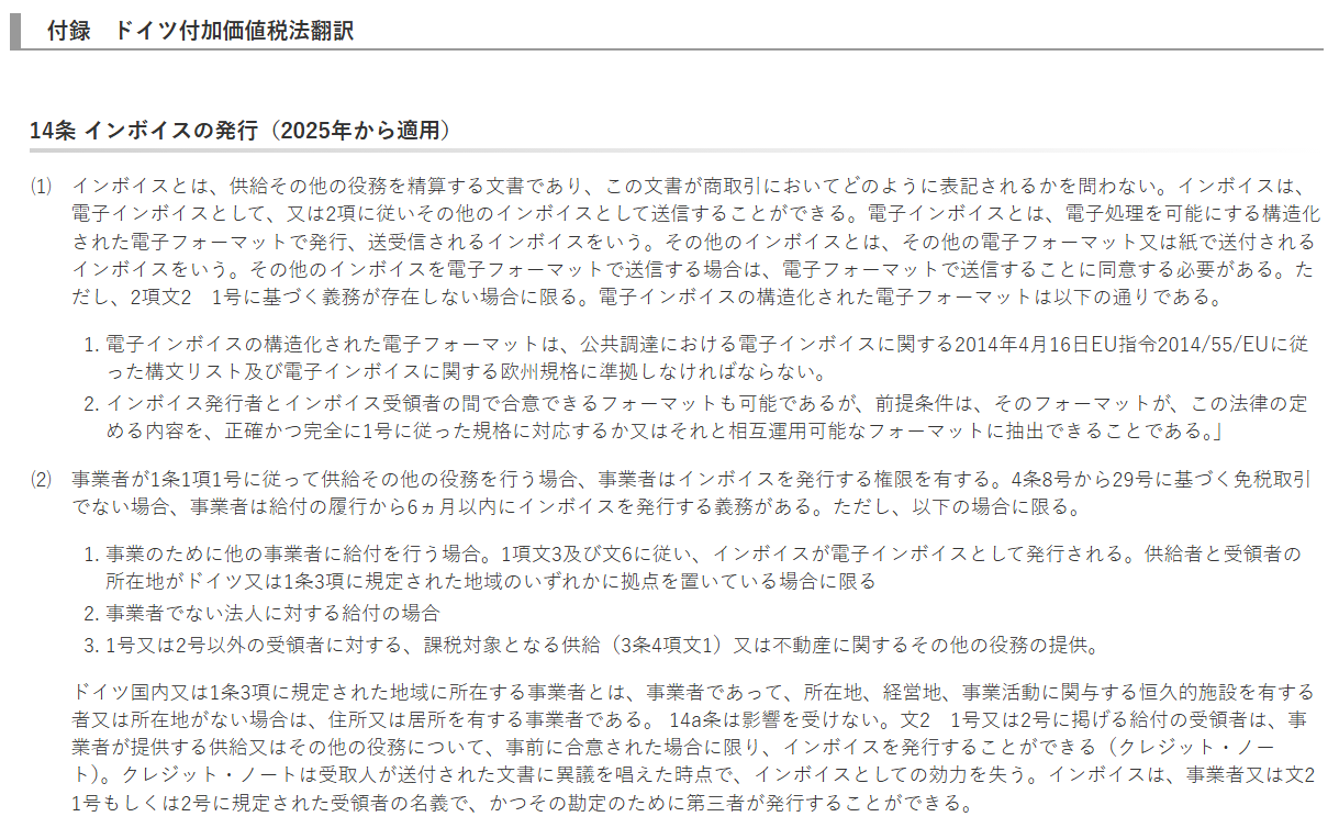 ドイツ付加価値税法と消費税法――補遺 段階的なインボイス電子化義務、時限的付加価値税減税など 石川 紀(2025/11/11)
