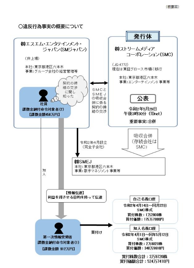 金融庁は、証券取引等監視委員会(以下「証券監視委」という。)から株式会社ストリームメディアコーポレーション(以下「SMC」という。)との契約締結交渉者の社員による情報伝達の検査結果に基づく課徴金納付命令の勧告を受け、令和6年8月27日に課徴金納付命令の決定(以下「本件決定」という。)を行ったところ、同年10月9日、本件決定に明白な誤り[1]があったとして、更正決定(以下「本件更正決定」という。)を行った。本稿では、本件の概要及び情報伝達・取引推奨規制を概観する。
