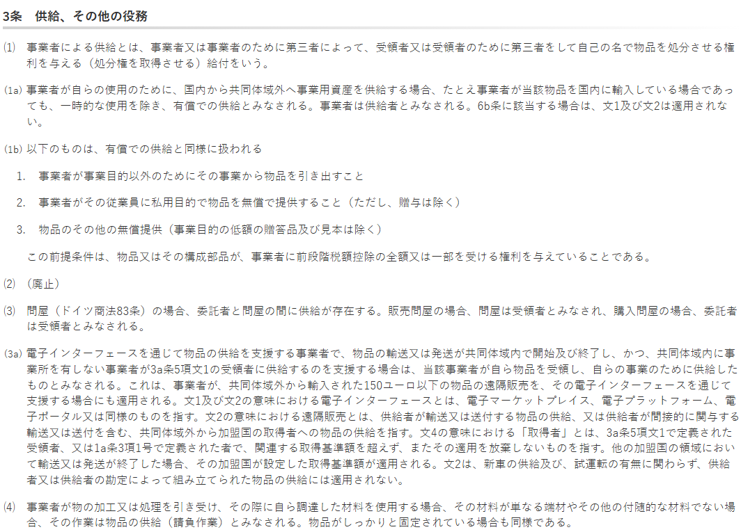 このように、問屋と委託者の間で付加価値税の課税対象となる供給があることとみなされる。この問屋についての規定を受けて3a項にプラットフォームに関し、以下の規定が置かれる。
