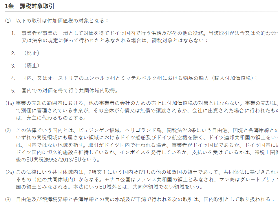 ドイツ付加価値税法では、こちらのような規定となる。