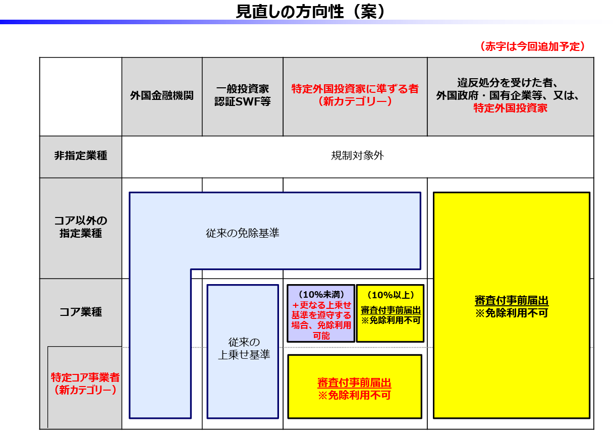 外為法に基づく対内直接投資審査制度における事前届出免除制度の見直し