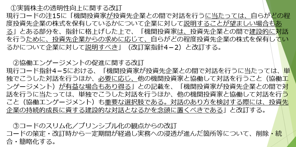 金融庁、「スチュワードシップ・コードに関する有識者会議」(令和6年度第3回)資料〔スチュワードシップ・コードの改訂案についての討議〕