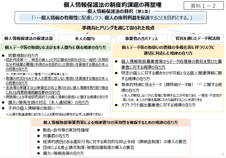 個人情報保護法の制度的課題に対する考え方(案)について(前編)